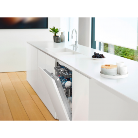 15 Servicio de cubiertos Su lavavajillas tiene una capacidad aún mayor gracias a su ingeniosa tercera cesta. Este cajón dedicado al lavado de cubiertos es ergonómico y completamente flexible; permite liberar espacio para copas de pie.